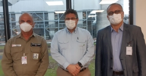 Da esquerda para direita: Luiz Moschini, Auditor Líder; Jailson Zocolotti de Aquino; atual Diretor Industrial da CMPC Celulose Brasil; e Roberto Odilon Horta, Gerente de Certificação, na reunião de abertura da Auditoria Inicial do SPIE da CMPC[/caption][
