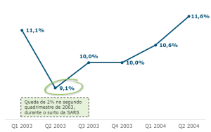 Gráfico 3 - Taxa de crescimento do PIB chinês por quadrimestre durante a SARS.