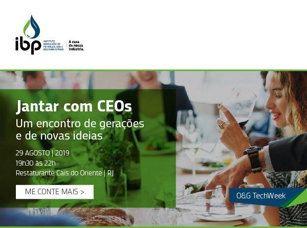 Mais de 60 jovens profissionais participarão de um jantar informal com lideranças da indústria de óleo e gás, no dia 29 de agosto. O Jantar com CEOs – Edição Tech integra o calendário de ações do IBP Jovem durante a Oil & Gas TechWeek e será realizado no restaurante Cais do Oriente (R. Visconde de Itaboraí, 8 – Centro), das 19h30 às 22h.