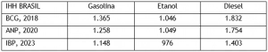 Em 2020, foi a vez da ANP corroborar este movimento de desconcentração, medido pelo índice de Hirschman-Herfindahl (IHH), e que continua acontecendo em 2023, conforme demonstrado na tabela abaixo (quanto menor o índice, mais desconcentrado é um setor).