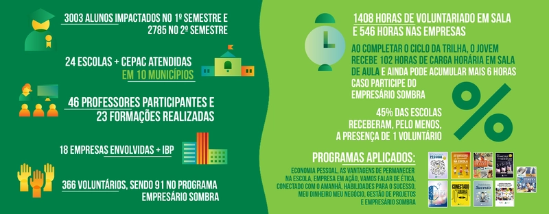O projeto busca combater a evasão escolar por meio da aplicação de uma sequência de programas estruturados nos pilares do empreendedorismo, educação financeira e preparação para o mercado de trabalho, dentro do currículo do ensino médio de escolas públicas da rede estadual do Rio de Janeiro.