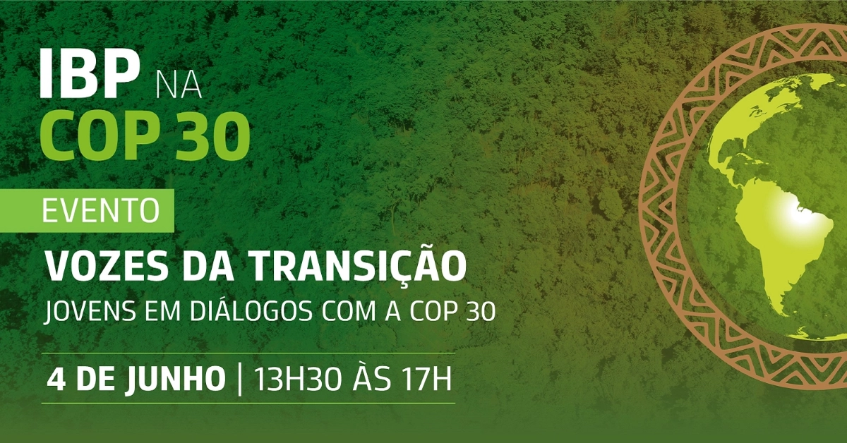 No próximo dia 04 de junho, a partir das 13h30, o IBP promove, em sua sede, o evento “Vozes da Transição - Jovens em Diálogos com a COP 30”, que tem o objetivo de levar conhecimento aos jovens sobre a Conferência das Nações Unidas sobre Mudança do Clima, explorando temáticas como transição energética justa, descarbonização e liderança no setor de energia. As inscrições são gratuitas e podem ser feitas aqui.