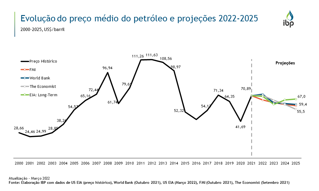 Evolução dos preços internacionais do petróleo e projeções 2022-2025
