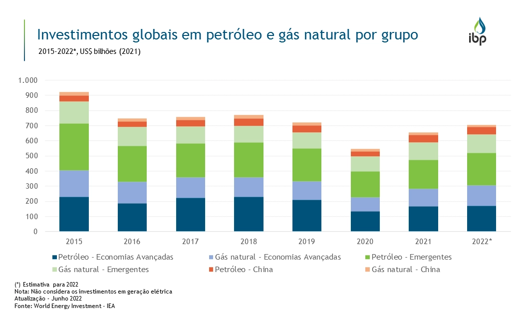 Após a queda observada em 2020, decorrente dos efeitos da pandemia da Covid-19, os investimentos no setor continuam numa tendência ascendente, apesar de ainda estarem abaixo do período pré-pandemia. A IEA alerta, entretanto, que esse crescimento é um reflexo principalmente da inflação dos custos – mais de 25% desde 2020.