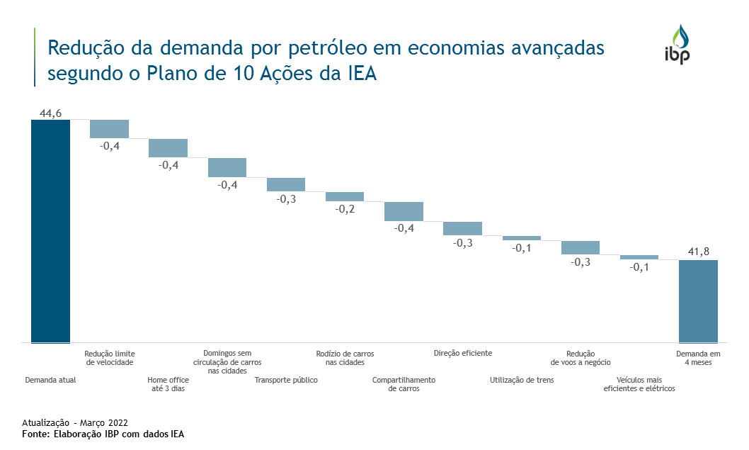 Diante da emergente crise energética global com a invasão da Ucrânia pela Rússia, a Agência Internacional de Energia (IEA na sigla em inglês) divulgou um plano de 10 ações para redução do consumo de petróleo com efeitos imediatos.